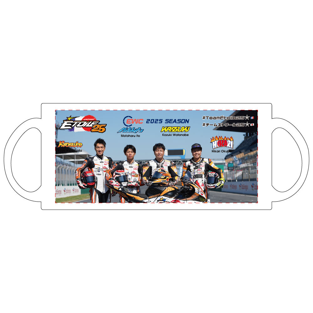 EWC(FIM世界耐久選手権)に参戦する「Team Étoile」のライダーたちを大胆にあしらった、完全オリジナルデザインのマグカップです!