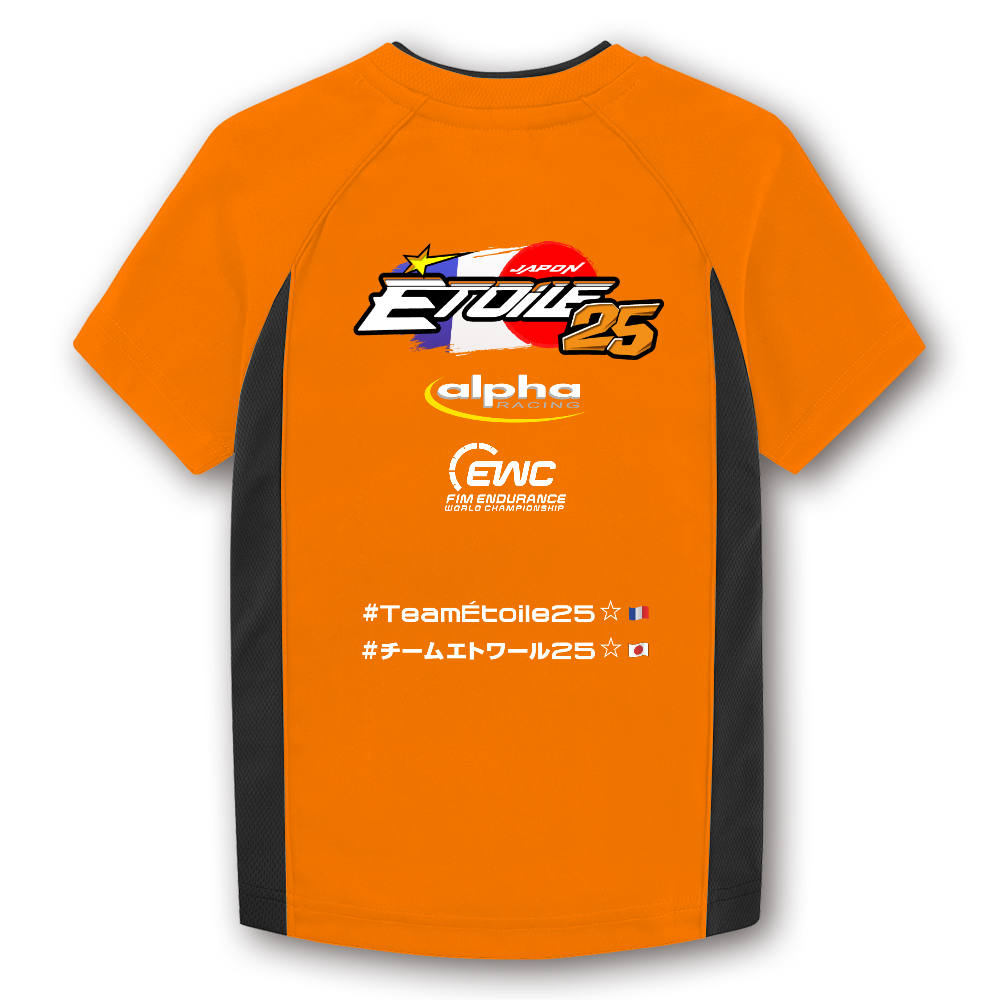EWC(FIM世界耐久選手権)に挑む「Team Étoile」の公式デザインTシャツが登場! 前面・背面ともにチームロゴを大胆に配置し、レースファン必見の一枚に仕上げました。背面にはサポートブランドやハッシュタグ入りで、チームへの応援メッセージも届けやすくなっています。 ▼ 快適な着心地と高い機能性 ・吸汗速乾ポリエステル100%素材を使用し、汗をかいてもサラッと快適。 ・伸縮性のあるウーリー糸を採用しており、動きやすさと耐久性を両立。 ・スポーツやアウトドアはもちろん、カジュアルな応援着としてもおすすめです。 チームを応援したい方、モータースポーツファンの皆様、ぜひこのTシャツで「Team Étoile」とともに走りましょう!